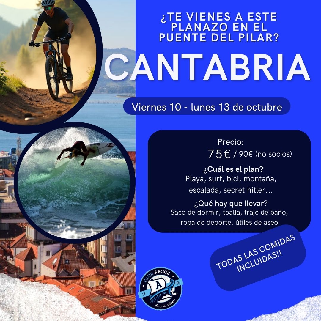 En el Puente de Pilar nos vamos de convivencia a Cantabria. Serán unos días estupendos en los que habrá playita, surf, mountain-bike, escalada, montaña, juego de mesa secret hitler, tiempo para Estudio, tertulias...
